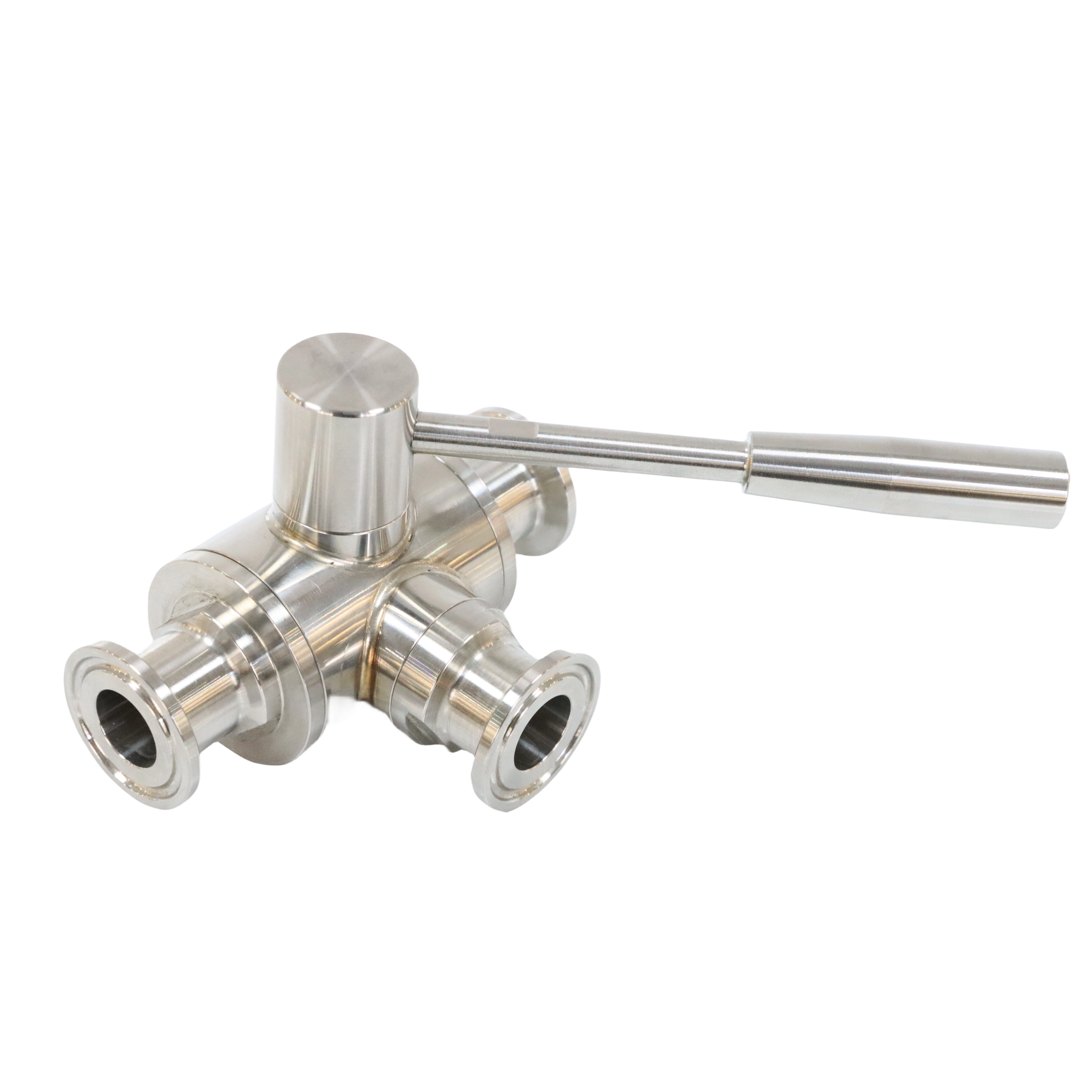 In stainless steel sanitary three-way ball valves, the main difference between L-type and T-type valves lies in the flow channel shape of the